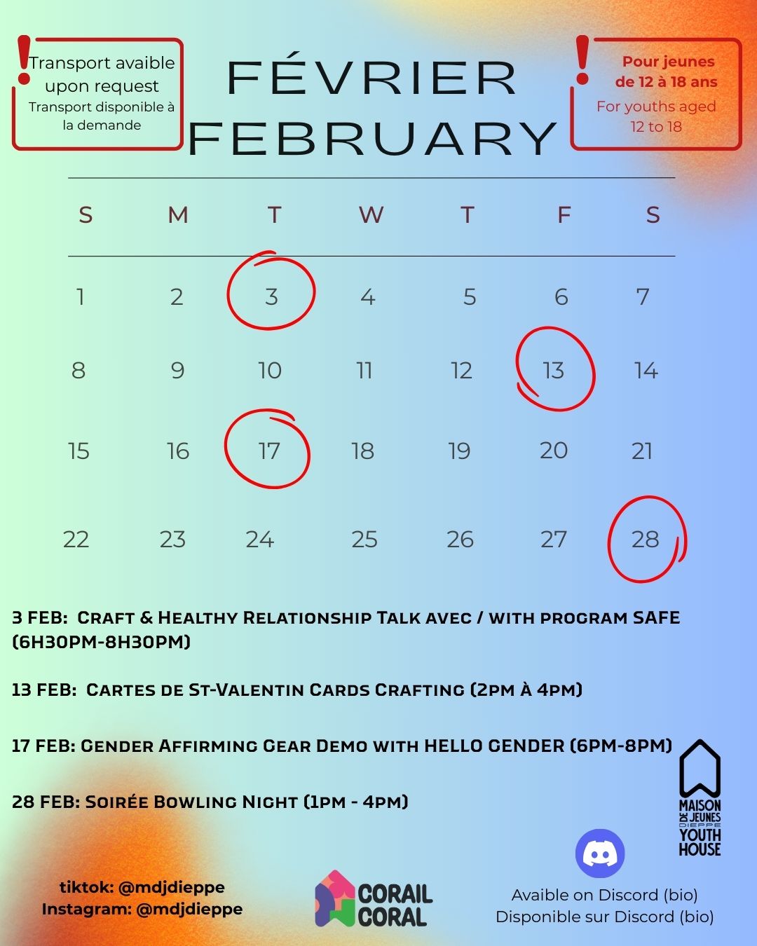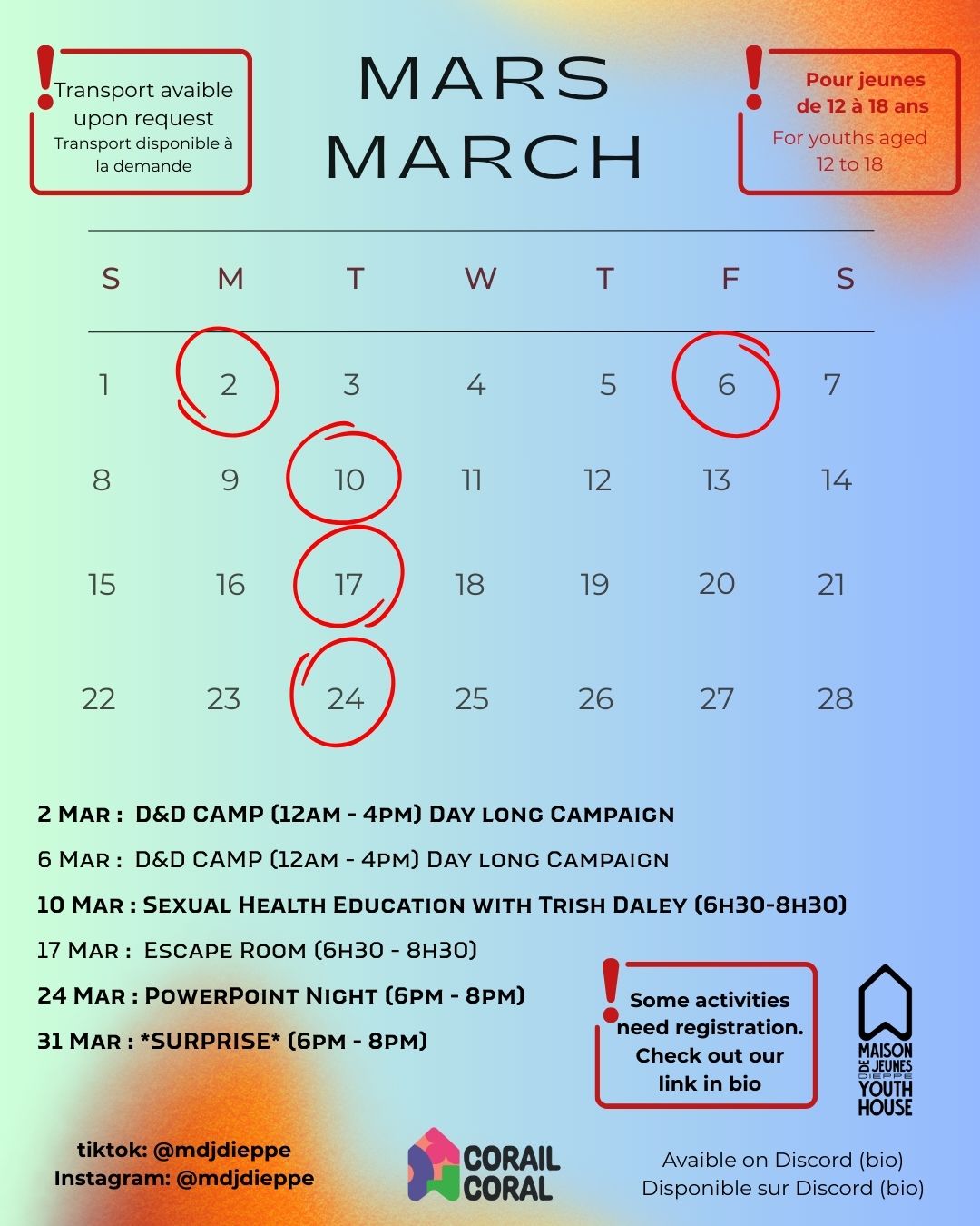 - Nos activités sont aussi offertes en virtuel grâce à notre Discord.